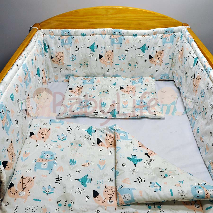 Babakirály Gyermek ágynemű szett Bébi méret, Erdei állatok, türkiz 75 * 100 cm (3 db/sz)