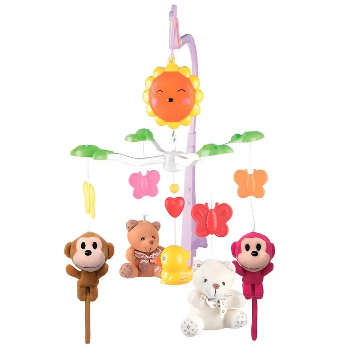 Babé Bed Bell Zenélő forgó Plüss macik és majmócák, felhúzós