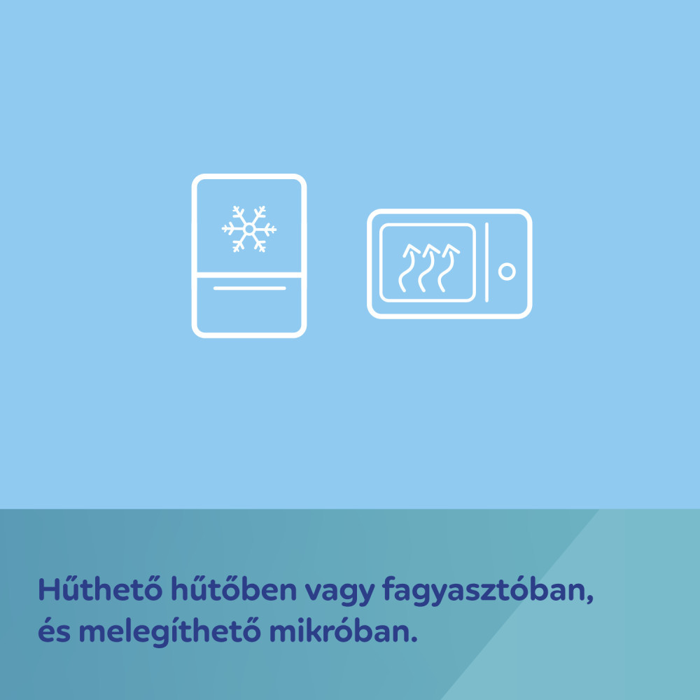 Hűtőben vagy fagyasztóban hűthető, illetve mikróban melegíthető.