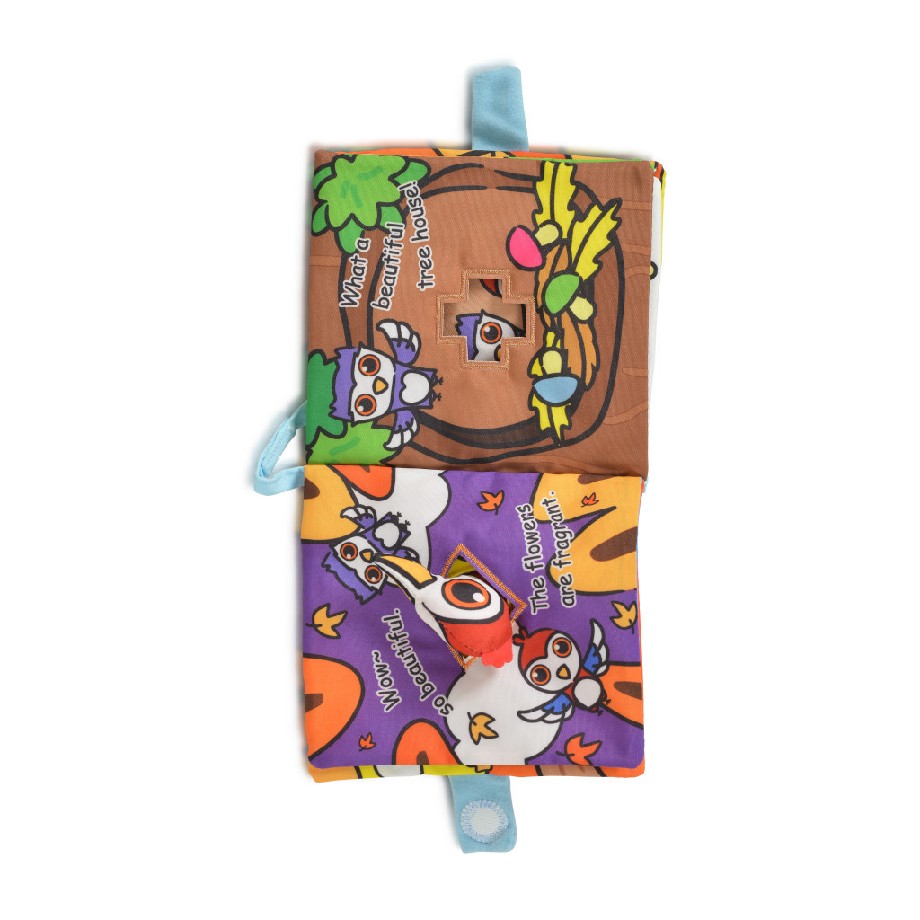 Jollybaby Textil bébijáték kiskönyv Montessori fakopáncs - Narancs