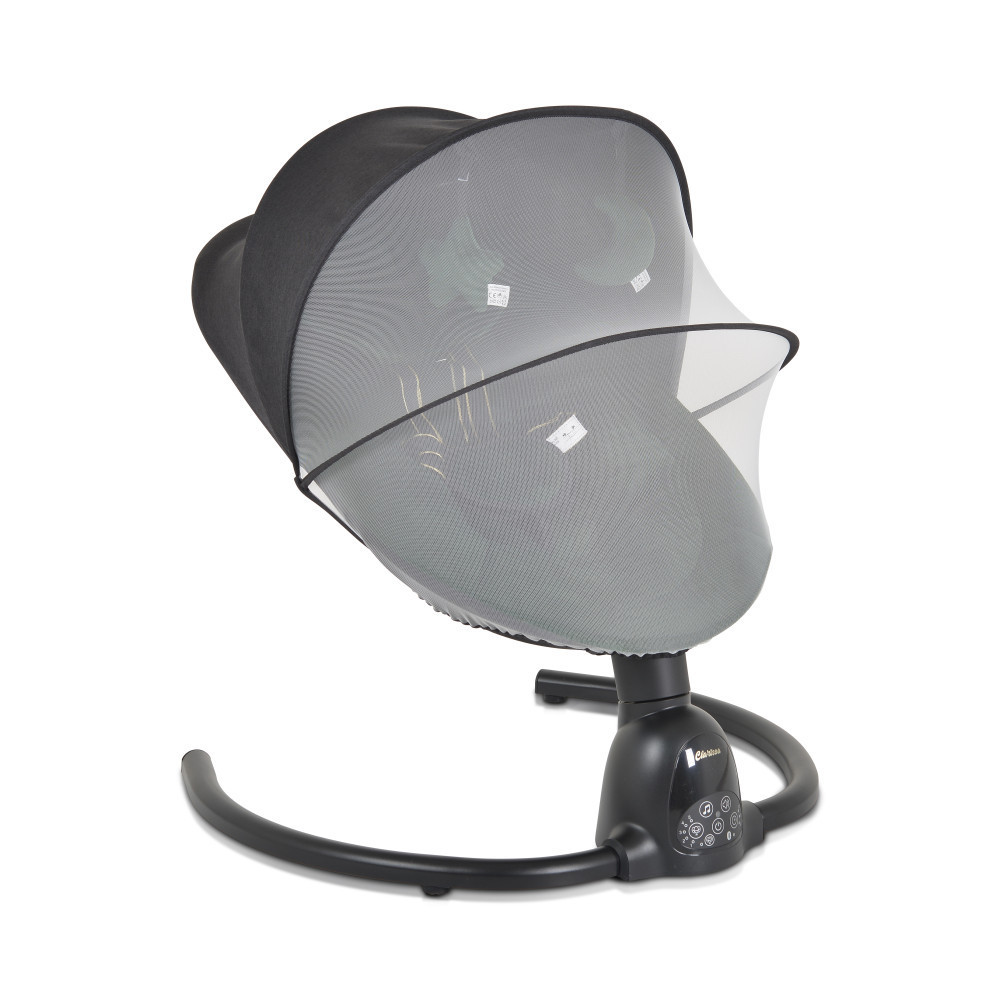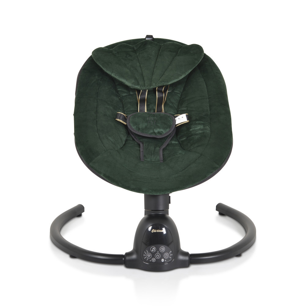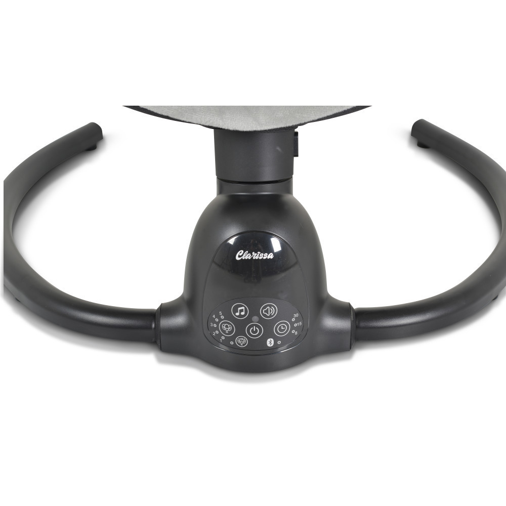 A Clarissa babahinta 5 sebességgel rendelkezik, stílusos és letisztult kialakítású, bármilyen belső térbe illeszkedik. 5 lengési sebesség közül választhat. A hinta beépített mozgásérzékelővel rendelkezik, amely automatikusan aktiválja a hintát, amikor a gyermek mozog. A Bluetooth funkció segítségével tetszés szerinti zenét játszhat le arra az esetre, ha nem szeretné kihasználni a rendelkezésre álló 10 dallam előnyeit. A hinta csak 2 m kábelhosszúságú adapterrel működik (a készlet tartalmazza). A mechanizmus érintőpaneljével vagy távirányítóval vezérelhető. Opcionálisan használhatja az időzítőt 8, 15 és 30 perces opciókkal. Ezen opciók bármelyikének kiválasztásával a lengés leáll a megadott időintervallum után. Az 5 pontos biztonsági öv gondoskodik a gyermek biztonságáról. A termék szúnyoghálóval ellátott ernyővel és 2 plüssjátékkal rendelkezik. A baba kényelme érdekében a készlet egy puha párnát is tartalmaz. A kárpit könnyen eltávolítható mosáshoz. Az elemet egy felnőtt egy mozdulattal gyorsan és egyszerűen szétszedheti. Ezenkívül rendkívül könnyű felépítése kényelmessé teszi, hogy más helyiségbe vagy útközben is vigye.