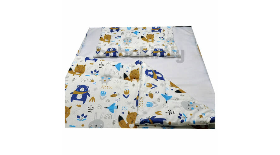 Babakirály Gyermek ágynemű szett Bébi méret, Erdei állatok, kék 75 * 100 cm (2 db/sz)